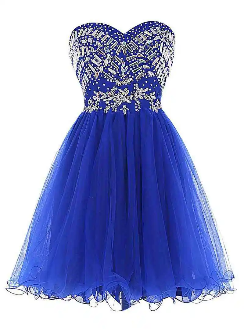 Short Blue Sweetheart Backless Homecoming Dress Rhinestone Piping Dress Graduation Ceremony A-Line Sleeveless Tulle Prom Gown US $129.00from Weddings - Events my new fed http://s.click.aliexpress.com/e/_dZ5YAe7